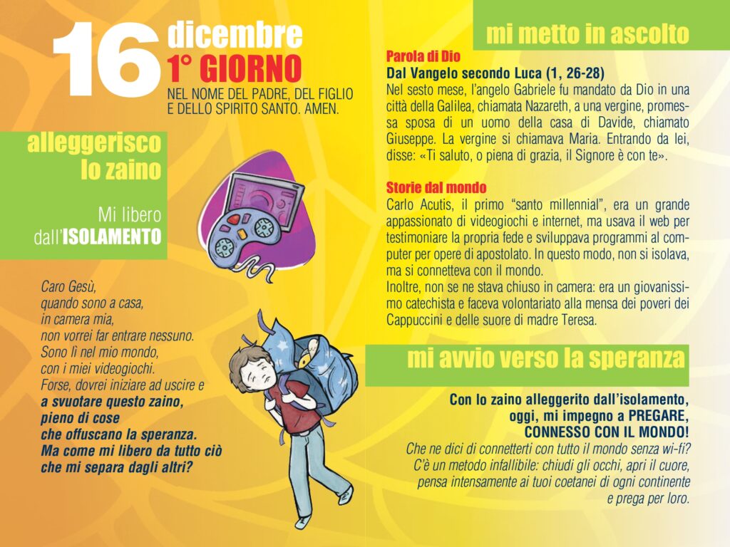 Puoi farlo davanti al presepe di casa tua dove ti invitiamo a collocare “lo zaino del tuo cuore” da liberare
