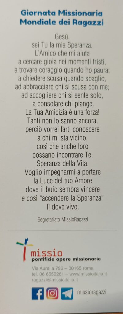 CLICCA QUI PER RAGAZZO MISSIONARIO.